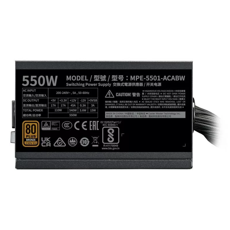 COOLER MASTER MWE 550W V3 ATX 3.1 – 80+ BRONZE – 550 WATTS