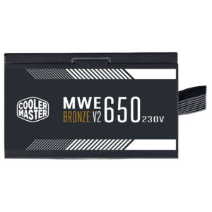 L’alimentation PC Cooler Master MWE Bronze 650W V2 offre une efficacité 80PLUS Bronze, un gage de performances d’efficience moyenne de 85% pour une charge typique. Le design de circuit CC-CC assure l’alimentation électrique en toute sécurité des composants de manière fiable. Le ventilateur HDB de 120mm dispose d’un mode semi-passif jusqu’à 15% de charge. En d’autres termes, moins de gaspillage d’énergie et moins de bruit pour les opérations basiques du système. Discrets, les câbles noirs plats sont flexibles, facilitant ainsi leur mise en œuvre dans votre système tout en prenant moins de place. Un véritable « plus » pratique pour les petits boîtiers.