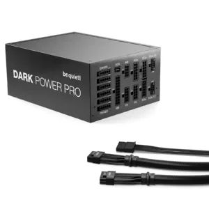 La be quiet! Dark Power Pro 13 est une alimentation ATX 3.0 qui embarque 2 connecteurs 12VHPWR pour les cartes graphiques PCIe 5.0 et six connecteurs PCIe 6+2 broches pour assurer la compatibilité avec toutes les autres cartes. Cela rend cette alimentation extrêmement polyvalente et en fait le choix parfait pour les systèmes haut de gamme actuels et à venir.