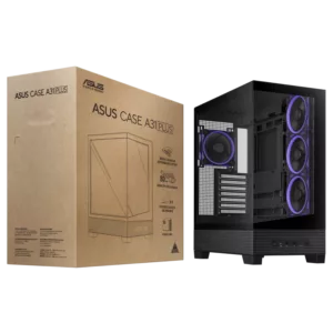 L’ASUS Prime A31 PLUS TG ARGB se distingue par son design élégant et sa conception ergonomique pensée pour les gamers. Doté de finitions soignées et d’un éclairage ARGB de qualité, ce boîtier apporte une touche de modernité à votre setup gaming. Sa structure robuste et ses multiples options de personnalisation vous permettent de créer un espace de jeu unique, à votre image.