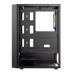 Le boîtier Antec AX26 RGB Elite au format moyen tour est conçu pour les gamers à la recherche d’un équilibre entre performance, esthétique et efficacité du refroidissement. Il prend en charge les cartes mères ATX, Micro-ATX et ITX, offrant une grande flexibilité pour divers types de configurations. Son design moderne se distingue par une façade Mesh optimisée pour la circulation de l’air, accompagnée d’un panneau latéral en verre trempé qui met en valeur vos composants. Le boîtier est livré avec quatre ventilateurs RGB fixes 120 mm préinstallés (trois à l’avant, un à l’arrière), assurant un flux d’air constant et une ambiance lumineuse personnalisable.