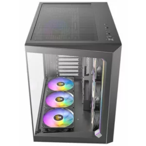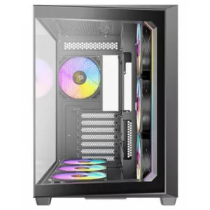 Le boitier moyen tour Antec C5 ARGB est un écrin pour la mise en évidence de votre setup gaming grâce à sa vue dégagée à 270° avec sa façade et son panneau latéral en verre trempé 4 mm. Côté refroidissement, rien n’est laissé au hasard avec 7 ventilateurs 120 mm ARGB PWM qui bénéficie de la conception mesh sur le côté et le dessus ainsi que la possibilité de faire cohabiter 3 watercooling AiO.