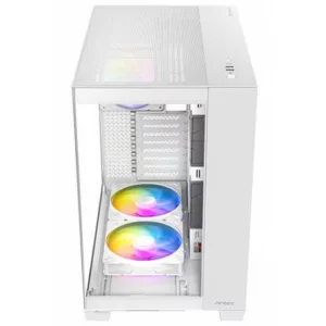 Le boîtier moyen tour Antec C8 ARGB est un modèle de la série Constellation, conçu pour offrir d’excellentes performances de refroidissement et un design épuré. Il dispose d’un panneau en verre trempé sur 270 degrés, permettant une vue panoramique sur votre setup gaming. Côté ventilation, le C8 ARGB supporte jusqu’à 10 ventilateurs (dont 3 installés et peut accueillir des radiateurs de 360 mm simultanément sur le dessus, dessous et latéralement). Côté installation, il offre une gestion des câbles optimisée avec des sangles Velcro et une conception pratique du support d’alimentation.