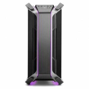 Subtil et raffiné, ce boîtier vous offrira tout : les bandes RGB intégrées dans les zones supérieures, inférieures et en façade du boitier et les éléments en verre permettent à ce modèle de se distinguer sans le dénaturer. Le panneau latéral gauche est découpé et courbé à partir de deux éléments en verre trempé épais, un détail que seuls les produits de la gamme COSMOS offrent sur le marché actuel. Il dispose en outre d’un système permettant de disposer la carte graphique en biais pour profiter pleinement de cette merveille.