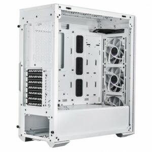 Le Cooler Master MasterBox MB520 Mesh ARGB est un boitier moyen tour aux courbes esthétiques avec trois ventilateurs ARGB. Avec sa fenêtre latérale en verre trempé et sa façade Mesh ajourée, le MB520 Mesh ARGB est un véritable bijou prêt à accueillir une configuration musclée. Son espace intérieur généreux permet d’installer une carte mère Mini-ITX, Micro-ATX ou ATX couplées à une carte graphique d’une longueur maximale de 410 mm. Avec son flux d’air optimisé et sa compatibilité watercooling, ce boitier assure à chaque composant un refroidissement optimal. Pour des effets incroyables, ce boîtier offre un rétro-éclairage synchronisé (ARGB) compatible avec les cartes mères ASUS, MSI, Gigabyte ou AsRock. Découvrez sans plus attendre un boitier complet disposant d’un excellent compromis prix/évolutivité.