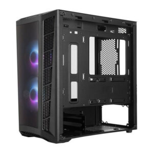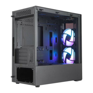 Le MasterBox MB320L ARGB de Cooler Master permet d’accueillir des cartes mères au format micro-ATX ou mini-ITX afin de monter une configuration suffisamment puissante pour vos jeux vidéo favoris. Ce boîtier pourra accueillir une carte graphique de 344 mm et le processeur sera refroidi par un ventirad d’une hauteur maximum de 166 mm. Vous disposerez par ailleurs de 4 emplacements PCI pour les cartes d’extension de votre futur PC. Côté stockage, il dispose de 2 baies de 2.5″/3.5″ et de 2 baies de 2.5″.
