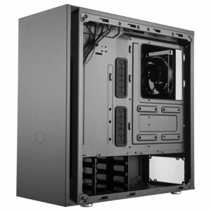 Le Silencio S600 de Cooler Master est un boitier au format moyen tour standard au design sobre et épuré avec une gestion avancée du bruit. Ses parois garnie de mousse isolante permettent de réduire efficacement les nuisances sonores de votre configuration que ce soit à partir d’une carte mère ATX, micro-ATX ou mini-ITX.