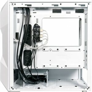 Le boîtier Cooler Master MasterBox TD300 Mesh utilise la technologie FineMesh pour permettre à sa façade en mesh polygonal d’offrir un flux d’air maximisé et d’assurer la filtration de la poussière. Sur le côté, la fenêtre en verre trempé offre une vue imprenable sur vos composants. De son côté, le panneau supérieur s’enlève entièrement favorisant ainsi l’accès pour l’installation des ventilateurs et radiateurs.
