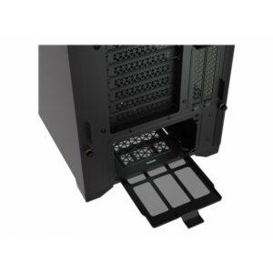 Le Corsair 5000D Airflow propose un câble management optimisé afin de favoriser un montage propre et rapide. Les câbles ne gênent pas la circulation du flux d’air et l’aspect visuel reste soigné.