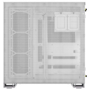 Conception à deux compartiments qui favorise un refroidissement efficace et un système plus épuré et organisé. Un compartiment doté de plusieurs fixations pour ventilateurs et radiateurs, et un deuxième compartiment pouvant accueillir l’acheminement des câbles, le stockage et le bloc d’alimentation.