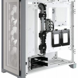 Le Corsair 4000X est conçu pour être efficace à long terme. Il intègre des matériaux durables et propose plusieurs options de montage pour les disques (2.5″ et 3.5″) comme pour les cartes graphiques (montage horizontal ou vertical). Le fort potentiel de refroidissement de la tour garantit des performances constantes dans le temps. Enfin, la possibilité d’installer jusqu’à 6 ventilateurs 120 mm (ou 4 ventilateurs 140 mm) et un système de watercooling AIO jusqu’à 360 mm de longueur, fait du 4000X un boîtier PC résolument évolutif.