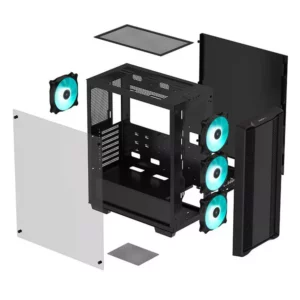 Le boîtier moyen tour DeepCool CC560 V2 dispose d’une fenêtre en verre trempé pour profiter de la vue de vos composants et ses 4 ventilateurs A-RGB préinstallés assurent une touche lumineuse colorée en plus d’un refroidissement efficace. Bien pensé, performant, ce boîtier vous permet d’effectuer n’importe quel assemblage, avec l’ensemble des composants que vous souhaiterez lui confier.
