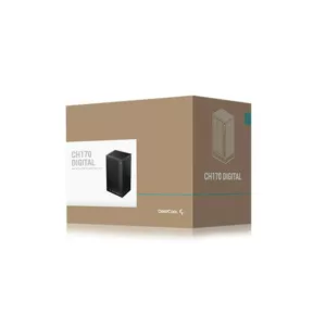 Le DeepCool CH170 DIGITAL est un boîtier ITX vertical qui présente toutes les caractéristiques d’un boîtier DeepCool à flux d’air élevé, par exemple les panneaux Mesh entourent chaque côté et créent un boîtier à flux d’air élevé et à faible encombrement comme aucun autre. Le layout interne ofe une grande flexibilité pour un certain nombre d’options de reoidissement et d’alimentation. Comme des supports de ventilateur amovibles, où le support de ventilateur supérieur peut être utilisé pour supporter un SSD, un disque dur ou un ventilateur de 120 mm ; trois filtres à poussière amovibles pour un nettoyage facile ; deux ports USB 3.0, un Type-C et un port audio hybride. Le CH170 DIGITAL est doté d’un écran numérique qui affiche quatre points de données essentiels, mettant en évidence les informations relatives au CPU, au GPU ou au PSU à tout moment.