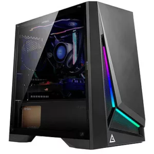 Le boîtier PC Gamer Antec DP301M fait partie de la gamme Dark Phantom. Il vous permettra d’intégrer les composants les plus performants tout en bénéficiant des nombreux avantages d’un boîtier relativement compact. Son style lumineux unique offre de nombreuses possibilités de personnalisation. Son espace intérieur optimisé est capable d’accueillir une grande carte graphique (jusqu’à 360 mm) et un système de watercooling AIO équipé d’un radiateur 280 mm.