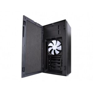 Il est équipé des nouveaux couvercles de fentes de ventilateur « sans outils » ModuVent. L’utilisateur peut installer des ventilateurs supplémentaires, ou recouvrir les fentes pour un maximum d’insonorisation. Le boîtier est fourni avec deux ventilateurs Fractal Design Dynamic GP14 de 140 mm, conçus pour fournir une circulation d’air superlative avec un minimum de bruit. La commande des ventilateurs, à trois vitesses, est stratégiquement intégrée au panneau frontal et peut prendre en charge jusqu’à trois ventilateurs.