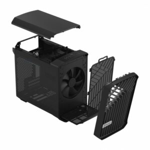 Le Fractal Design Torrent Nano Black TG Dark est un boîtier PC compact idéal pour l’assemblage d’une configuration Gaming peu encombrante. Il prend en charge jusqu’à 4 ou 5 ventilateurs (selon la configuration) ainsi que les watercoolings AIO jusqu’à 280 mm. Il dispose d’un panneau latéral en verre trempé, d’une façade ajourée et de ports d’extension sur le dessus. Son design remarquable et ses capacités de refroidissement avancées en font un choix particulièrement judicieux pour la conception d’un PC gaming compact, stylé et efficace.