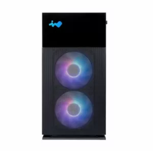 La façade comprend un subtil logo ARGB InWin qui apporte une modeste touche de couleur au boitier. Les diodes peuvent être synchronisées avec la carte mère.