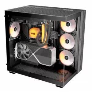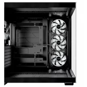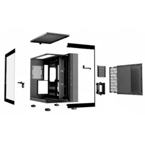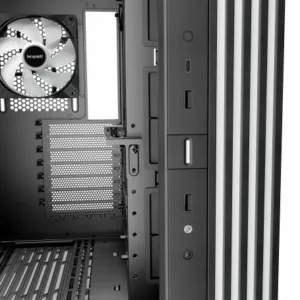Le Light Base 600 DX Black ne dispose d’aucun ventilateur. Cependant, avec ses dimensions généreuses, il peut accueillir un total de 10 ventilateurs, jusqu’à 2 radiateurs de 360 mm simultanément, une carte mère ATX et les cartes graphiques les plus puissantes. Grâce à son design à 2 chambres, les disques durs et les câbles sont dissimulés à l’arrière, sans gêner la circulation de l’air.