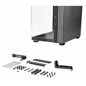 Le Light Base 600 DX Black est équipé d’un support VGA flexible et discret qui empêche l’affaissement de la carte graphique. Le meilleur dans tout ça ? Ce support fonctionne quelle que soit l’orientation de votre carte graphique, horizontale ou verticale. Résultat : un look épuré même avec des cartes graphiques imposantes et lourdes.