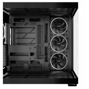 Le Light Base 900 FX Black est équipé de 4 ventilateurs Light Wings pour un refroidissement optimal de votre PC. Un ventilateur est installé à l’arrière pour évacuer l’air chaud, tandis que les 3 autres Light Wings 140 mm PWM Black avec pales inversées sont montés sur le côté. Les pales inversées permettent à votre système de rester esthétique même lorsqu’il est installé en entrée d’air latérale. De plus, les 7 pales des ventilateurs sont optimisées pour réduire les turbulences et le bruit, tout en offrant des performances élevées, même dans les configurations les plus exigeantes.