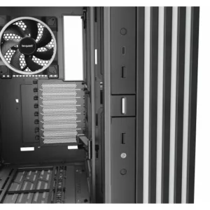 Le Light Base 900 FX Black est équipé d’un support VGA flexible et discret qui empêche l’affaissement de la carte graphique. Le meilleur dans tout ça ? Ce support fonctionne quelle que soit l’orientation de votre carte graphique, horizontale ou verticale. Résultat : un look épuré même avec des cartes graphiques imposantes et lourdes.