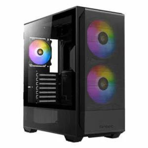 Le boitier moyen Tour Antec NX416L pour carte mère ATX, micro-ATX et mini ITX dispose d’une fenêtre latérale en verre trempée montée sur charnières, d’un port USB-C 3.1 et d’une compatibilité avec plusieurs systèmes de watercooling 120/140/240/280/360 mm pour un refroidissement optimal de vos composants gaming. Profitez d’un environnement généreux, optimisé pour vos composants et créez une ambiance gaming pour accompagner vos activités quotidiennes grâce notamment aux 3 ventilateurs ARGB fournis.