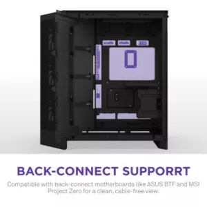 Le boitier moyen tour NZXT H9 Flow est conçu pour accueillir et refroidir les cartes graphiques les plus puissantes grâce à ses capacités de dissipation thermique étendues grâce à sa prise en charge de dix ventilateurs et ses nombreuses possibilités de montage de watercooling. Son panneau supérieur perforé optimise encore plus le refroidissement, et sa conception en verre trempé offre une vue panoramique unique sur votre configuration.