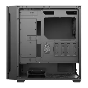 Le boîtier Moyen Tour Antec P10C dispose de nombreux avantages pour répondre à vos différentes attentes. 3 baies 2.5″ et 2 baies 2.5/3.5″ accompagnent une baie 3.5″ ainsi qu’une baie 5.25″ en façade, juste derrière la porte avant, pour installer un lecteur optique. Sur le sommet du boîtier, vous retrouverez 3 ports USB dont une version 3.1 Type C ainsi qu’un bouton de contrôle de la vitesse des ventilateurs.