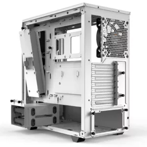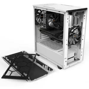 Deux ventilateurs Pure Wings 2 pré-installés avec des pales optimisées assurent un flux d’air parfait et un refroidissement constant. Malgré la conception compacte du boîtier, les ventilateurs avant et arrière sont des modèles en 140 mm, assurant un fonctionnement très silencieux. En option, trois autres ventilateurs de 140 mm peuvent être installés en plus.