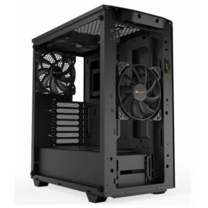 Trois ventilateurs Pure Wings 2 pré-installés avec des pales optimisées assurent un flux d’air parfait et un refroidissement constant. Malgré la conception compacte du boîtier, les ventilateurs avant et arrière sont des modèles en 140 mm, assurant un fonctionnement très silencieux. En option, trois autres ventilateurs de 140 mm peuvent être installés en plus.