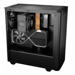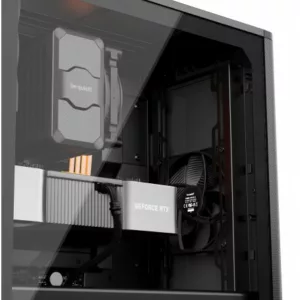 Be Quiet! a apporté un soin tout particulier au silence de fonctionnement dans ce Pure Base 501 Airflow Window avec deux ventilateurs PWM Pure Wings 3 140 mm, une façade et le dessus en mesh pour optimiser le flux d’air et un panneau latéral isolé et de nombreux composants disposant de systèmes anti-vibrations.