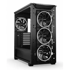 Le be quiet! Shadow Base 800 FX est un boîtier grand tour optimisé pour un flux d’air efficace tout en offrant un fonctionnement silencieux et en proposant un éclairage ARGB en façade et via 4 ventilateurs Light Wings. Le Shadow Base 800 FX de be quiet! propose suffisamment d’espace intérieur pour accueillir les composants les plus imposants comme les cartes graphiques jusqu’à 430 mm de longueur ainsi que les cartes mères jusqu’au format E-ATX. Côté refroidissement, 4 ventilateurs Light Wings 140 mm sont préinstallés et le boitier peut accueillir des watercooling de 420 mm en façade et sur le dessus.