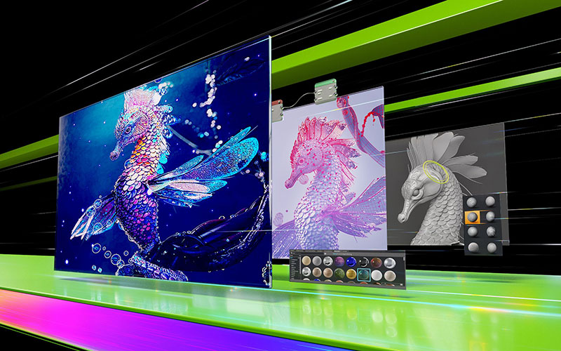 Vos idées, accélérées par NVIDIA Studio. Faites passer vos projets créatifs au niveau supérieur avec NVIDIA Studio. Optimisées par un nouveau matériel dédié, les cartes graphiques RTX série 40 vous fournissent des performances inégalées pour le rendu 3D, le montage vidéo et la conception graphique. Profitez des capacités d’accélération sans précédent de RTX dans les principales applications de création du marché, des pilotes NVIDIA Studio à la pointe de la technologie conçus pour garantir un maximum de stabilité et d’une suite d’outils exclusifs exploitant la puissance de RTX pour accélérer les workflows de création assistés par l’IA.