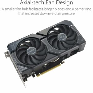 L’ASUS Dual GeForce RTX 4060 Ti OC Edition 16GB cumule durabilité, compatibilité et performances pour apporter satisfaction aux gamers les plus exigeants. Les fonctionnalités de cette carte graphique incluent des technologies de pointe ainsi qu’un système de refroidissement exclusif avec des ventilateurs équipés de la technologie Axial-tech.