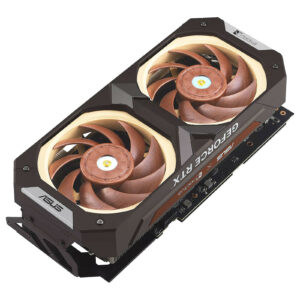 L’ASUS RTX4080S-O16G-NOCTUA est le fruit de la collaboration entre ASUS et Noctua. Cette carte graphique cumule le savoir-faire de Noctua en matière de refroidissement avec un dissipateur personnalisé qui tire pleinement avantage des deux ventilateurs Noctua NF-A12x25 PWM et de la qualité de conception des cartes graphiques ASUS pour proposer des fréquences de fonctionnement élevées en sortie d’usine.