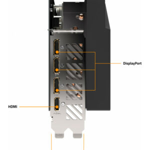 De la performance et de l’efficacité, voilà ce que propose Gigabyte avec sa carte graphique basée sur l’architecture NVIDIA Ada Lovelace. De la performance grâce à son overclocking d’usine et à un système de refroidissement exclusif et ultra-performant à 3 ventilateurs (WINDFORCE 3X), radiateur aluminium et heatpipes cuivre. Sans oublier bien sur le backplate métal au dos du PCB de la carte.