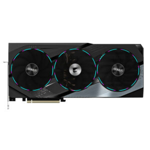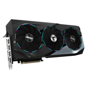 Gigabyte met à disposition une carte graphique axée sur l’architecture NVIDIA Ada Lovelace offrant une combinaison de performances et d’efficacité remarquable. Cette carte se distingue par son overclocking d’usine et son système de refroidissement exclusif, équipé de trois ventilateurs ultra-performants (WINDFORCE 3X, 3x Bionic shark 108 mm), d’un radiateur en aluminium (avec technologie Vapor chamber) et de 9 heatpipes en cuivre.