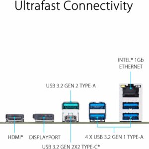 Les nombreux ports USB prennent en charge les plateformes haut de gamme chargées de périphériques, notamment le connecteur USB Type-C arrière avec USB 3.2 Gen 2×2 ultra-rapide pour des vitesses de transmission allant jusqu’à 20 Gb/s.