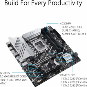 Les trois slots M.2 de la PRIME Z790M-PLUS supportent des transferts de données jusqu’à 64 Gb/s via la bande passante PCIe 4.0 afin que les temps de démarrage et de chargement des applications soient réduits.