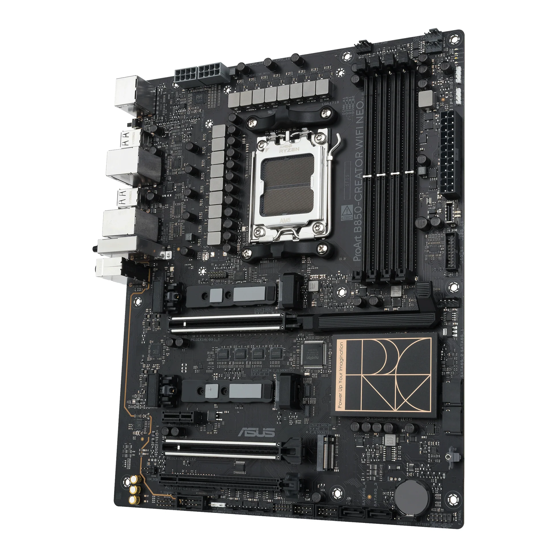 La carte mère ASUS ProArt B850-CREATOR WIFI NEO est conçue pour répondre aux exigences des professionnels de la création en quête de fiabilité et de performances. Dotée d’un socket AM5, elle prend en charge les processeurs des séries Ryzen 7000, 8000 et 9000, garantissant ainsi la compatibilité avec une large gamme de processeurs puissants. Cette carte mère au format ATX intègre quatre emplacements DIMM capables de prendre en charge la mémoire SDRAM DDR5 avec des vitesses pouvant atteindre 9 000 MT/s. En matière de solutions de stockage, les utilisateurs apprécieront les nombreuses options de connectivité, notamment quatre ports SATA-600 et plusieurs emplacements M.2, pour une vitesse et une polyvalence accrues dans les configurations de stockage.