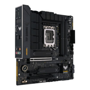 La carte mère ASUS TUF GAMING B760M-PLUS D4 conçue pour les processeurs Intel Core hybrides de 12ème et 13ème génération est idéale pour l’assemblage d’une configuration gaming puissante. Les cartes mères ASUS TUF Gaming sont pensées et conçues pour les Gamers exigeants à la recherche de performances et de fiabilité à long terme. Elles permettent de tirer parti du meilleur de leurs composants grâce à une conception unique faite de matériaux robustes et d’utilitaires exclusifs. Elles intègrent des fonctionnalités de jeu et associent les avantages des nouveaux processeurs Intel avec le design et les caractéristiques emblématiques d’ASUS.
