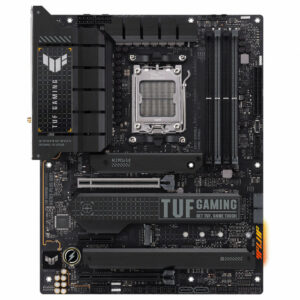 La carte mère ASUS TUF GAMING X670E-PLUS WFI est idéale pour concevoir un PC Gaming doté des technologies les plus avancées grâce à son socket AMD AM5 et sa compatibilité avec les processeurs AMD Ryzen 7000. Elle prend en charge la mémoire vive DDR5, les cartes graphiques PCI-Express 5.0, les SSD M.2 PCIe 5.0 et 4.0 et profite d’une connectivité réseau LAN 2.5 GbE et Wi-Fi 6E ainsi que de l’USB 3.1 & 3.2.
