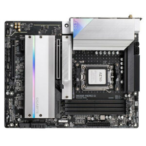 La carte mère Gigabyte B650 AERO G est idéale pour poser les bases d’une configuration gaming de pointe. Elle est conçue pour épauler un processeur AMD Ryzen 7000 sur socket AMD AM5. Elle permet de prendre en charge la DDR5, les cartes graphiques à la norme PCI-Express 4.0 et les SSD à la norme 4.0. Elle embarque une connectivité complète avec du réseau LAN 2.5 GbE, Wi-Fi 6E et du Bluetooth 5.2 ainsi que de l’USB 3.1 & 3.2.