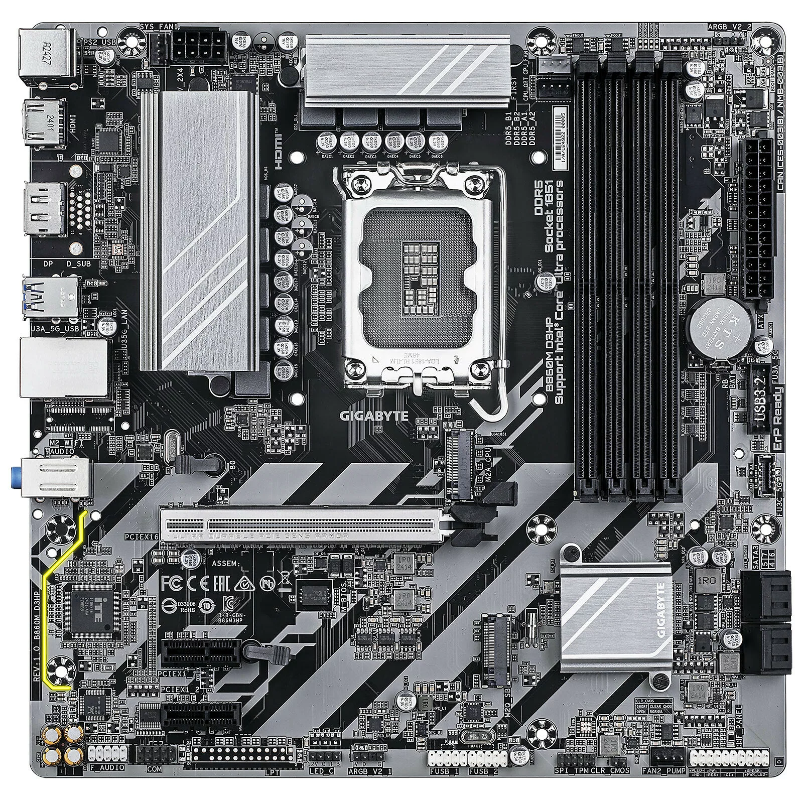 Embarquant le chipset Intel B860, la carte mère Gigabyte B860M D3HP sera la pierre angulaire de votre configuration. Dotée du socket Intel LGA1851, la Gigabyte B860M D3HP prend en charge les processeurs Intel Arrow Lake-S boostés à l’IA. Cette carte mère Gigabyte au format Micro ATX propose une connectique riche avec un slot PCI-Express 5.0 16x pour votre carte graphique, prend en charge les SSD M.2 PCIe 4.0 pour un système réactif et des temps de chargements réduits ainsi que la RAM DDR5.
