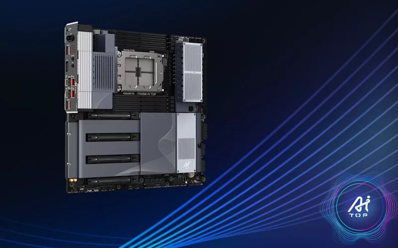 La carte mère pour station de travail Gigabyte TRX50 AI TOP est conçue pour les utilisateurs à la recherche de hautes performances. Elle prend en charge les processeurs multicœurs surpuissants AMD Ryzen Threadripper PRO 7000WX et Threadripper 7000 sur socket AMD sTR5, la RAM DDR5 4-channel, les SSD M.2 PCIe 5.0 ainsi que les cartes graphiques PCI-Express 5.0 pour des performances d’exception. Ces caractéristiques incroyables vous permettront d’assembler une station de travail surpuissante et parée pour l’avenir, destinée à la Réalité Virtuelle, au multitâche ultra-intensif, à l’édition numérique ou à l’édition musicale et vidéo.