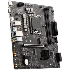 La MSI PRO H610M-G est conçue pour accueillir les processeurs Intel Core sur socket LGA 1700. Elle permettra l’assemblage d’une configuration puissante et polyvalente capable de s’acquitter de toutes les tâches. Plus accessible que les jeux de composants Intel H670 et B660 Express, le chipset Intel H610 Express offre un très bon rapport performances / prix pour l’informatique de base (bureautique, Internet, multimédia et PC gaming entrée de gamme). Elle prend en outre en charge la RAM DDR5, les cartes graphiques PCI-Express 4.0 16x, les disques SATA 6 Gb/s et M.2 PCI-E NVMe et les périphériques USB 3.0.