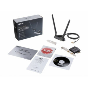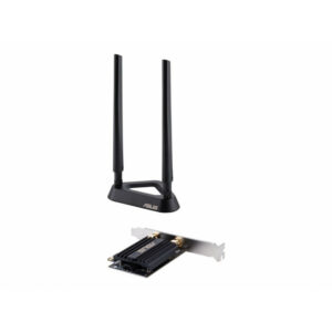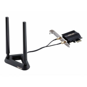 La carte réseau ASUS PCE-AC58BT est un adaptateur au format PCI-Express pour PC proposant du Wi-Fi 6 AX 3000 Dual-Band (2402 Mbps + 574 Mbps) et du Bluetooth 5.0. Vous êtes ainsi paré pour bénéficier de débits rapides et sans latence à la maison. Les deux antennes externes permet d’optimiser la réception et la qualité du signal pour un Wi-Fi fluide que ce soit à la maison ou au bureau.