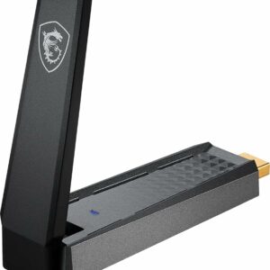 Migrez facilement votre ordinateur vers le Wi-Fi 6 et profitez d’un taux de transfert pouvant aller jusqu’à 1800 Mbit/s. Grâce à l’adaptateur USB 3.0 WI-Fi Dual Band AX1800 MSI GUAX18, vous pourrez jouer, streamer et faire des réunions en visio partout dans votre maison sans souffrir de latences. En utilisant le support fourni, vous déployez l’antenne pliable et placez l’adaptateur où vous le souhaitez.