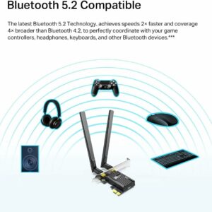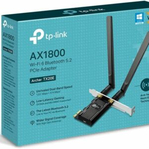 Branchez cette carte Archer TX20E de TP-Link dans un slot PCIe disponible de votre PC pour mettre à niveau ce dernier. L’Archer TX20E de TP-Link propose un débit Wi-Fi AX1800 (1201 Mbps sur la bande 5 GHz et 574 Mbps sur la bande 2.4 GHz) ainsi que le Bluetooth 5.2. L’Archer TX20E est le choix idéal pour des diffusions de vidéos HD, le jeu en ligne ou toute autre tâche intensément consommatrice de bande passante.