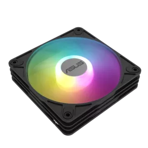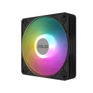 ASUS AR120 ARGB PWM Fan dispose d’un châssis extra-paciel de 28 mm avec un contrôle PWM, fournissant des effets de refroidissement et d’éclairage optimaux